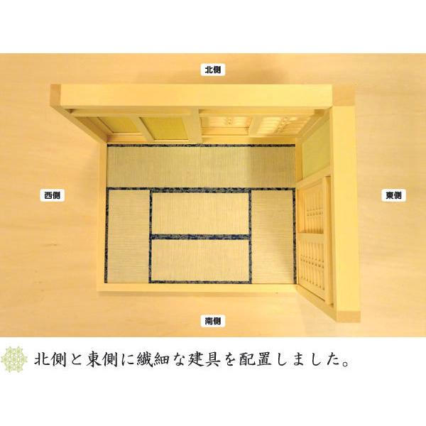 商品情報 和室のコーナーをミニチュアサイズで再現した和風ドールハウスです。 手先の器用な熟練の建具職人が、一つ一つ丁寧に仕上げました。細部にまでこだわり、釘を一切使わない職人の技術を生かして製作しています。当店のオリジナル製作品で、安心安全の日本製です。 小さくても襖や障子はちゃんと開閉できるので、大人も子供も思わず遊んでしまいたくなります 《ご確認下さい》 ※本体には基本、無垢の天然木を使用していますが、部分的に一部ベニヤ板(木製合板)を使用することもあります。 ※襖や障子は内側と外側の取り付け面が決まっています。反対に取り付けると隙間ができる場合があります。 ※撮影用の小物は商品には含まれません。 商品仕様 材質: ・本体:ベイヒバ(木材)、襖紙(壁面) ・襖戸:ベイヒバ(木材)、襖紙、べニア板 ・障子戸:ベイヒバ(木材)、ワーロン障子 ・畳:べニヤ板、襖紙 ※畳表は、襖紙です。(い草は未使用) 塗装:無塗装 箱入り 送料無料 生産国:日本(富山県) ≪外形寸法≫ サイズ(ミリ):幅264×奥行204×高さ174 ※ハンドメイド品の為、5mm前後の誤差があります。 縮尺:1/16スケール(縮尺は目安) |