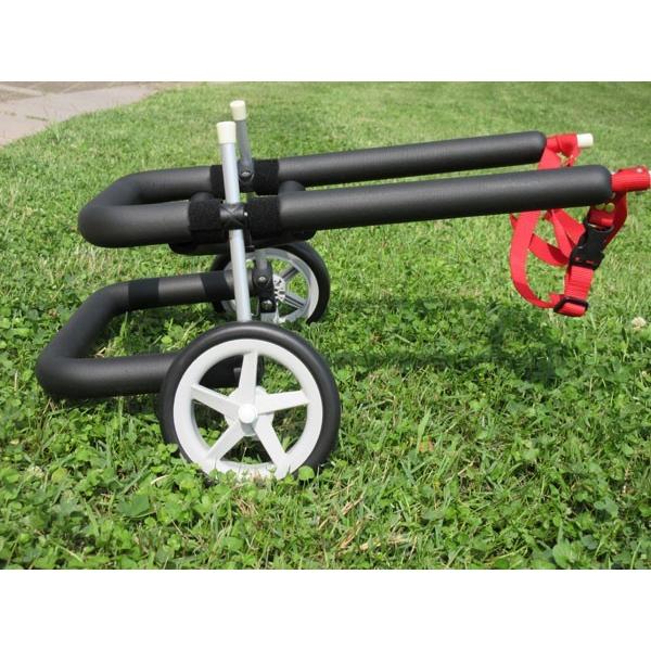 商品情報 小型犬用2輪タイプ車椅子 ミニチュア・ダックスフンド、チワワ、トイプードル、シーズー等 ヘルニアやDM(変性性脊髄症)、怪我や病気、高齢で寝たきりのワンちゃんや猫ちゃんの為の車椅子です。 ワンちゃんに負担をかけない軽量アルミパイプで構成しており大変軽量で脚力が弱く歩きにくい高齢犬の歩行補助具としてもお使い頂けます。 体にあたる部分は発砲ゴムやウレタンでカバーしております。室内使用時でも家具等を傷めません。 ワンちゃんの状態に合わせて高さの調整が出来ます。 車椅子をお使いになる事によって歩く為の機能の回復(リハビリ)、寝たきりによる内臓圧迫の回避、何よりワンちゃんのストレス軽減につながります。 現在の製作納期はサイズ確認後3〜4日を予定しております。 |